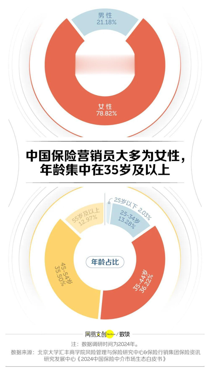 由北京大学汇丰商学院发布的《2024 中国保障中介商场生态白皮书》,也佐证了“35+ 处事转型保障业”并非仅仅个段子,叙述呈现的保障营销员群体画像,在年龄结构上,35~54 岁占到快要四分之三的比重。