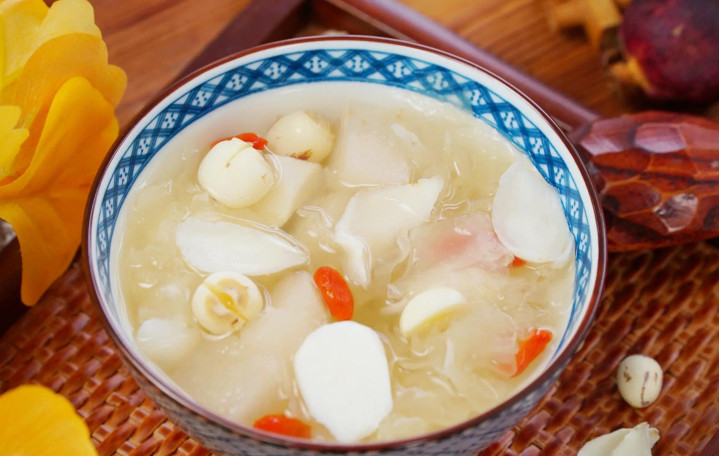 食材:银耳 1 朵,雪梨 1 个,百合 20 克,冰糖适量,净水 1500 毫升作念法:银耳用净水泡发 30 分钟,泡发后去除根部并撕成小朵;雪梨洗净去核,切成小块;百合用净水浸泡 10 分钟后冲洗干净备用。锅中加入净水,放入银耳和百合,大火烧开后转小火煮 40 分钟,加入雪梨块和冰糖,不竭煮 20 分钟,至银耳稠密、雪梨软烂即可。养生亮点:银耳能滋阴润肺、养胃生津,其含有的植物胶质可让皮肤更显细腻;雪梨具备润肺润燥、清热生津的作用;百合能养阴润肺、清快慰神。冬季征象干燥,不少东说念主除动作冰凉外,还会出现口干舌燥、皮肤干燥等问题,这说念甜汤既能暖身,又能润肺润燥,兼顾养气血与护肤功效,口感清甜柔润,符合秋冬季节饮用。