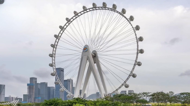 新加坡遨游者,同期亦然亚洲最高的不雅景摩天轮,位于滨海中心的购物中心上方,总高度来到165米。它于2008年开幕,灵通前三天票价每张高达8888新加坡币的高额门票如故被抢购一空。它领有28个胶囊客舱,每个舱最多可容納28东说念主。旋转一圈约莫30分钟,除了不错俯视滨海湾的好意思景以外,天气晴朗时还能看到45公里外的印尼巴淡岛以及马来西亚柔佛的陶然,无疑成为了当地最具代表性的地标之一。