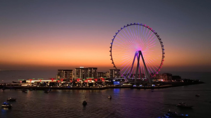 这是现时世界上最大且最高的不雅景摩天轮,位于迪拜船埠隔壁的蓝水岛上,它从2015年启动兴修,中间由于工程宽限以及疫情影响直到2021年10月21日才灵通。这座摩天轮的高度与直径齐是250米,领有48个客舱最多可同期搭载1750名乘客。透过它的不雅景窗不错在约38分钟的本事里,赏玩迪拜船埠、哈利法塔以及棕榈岛等盛名地标。