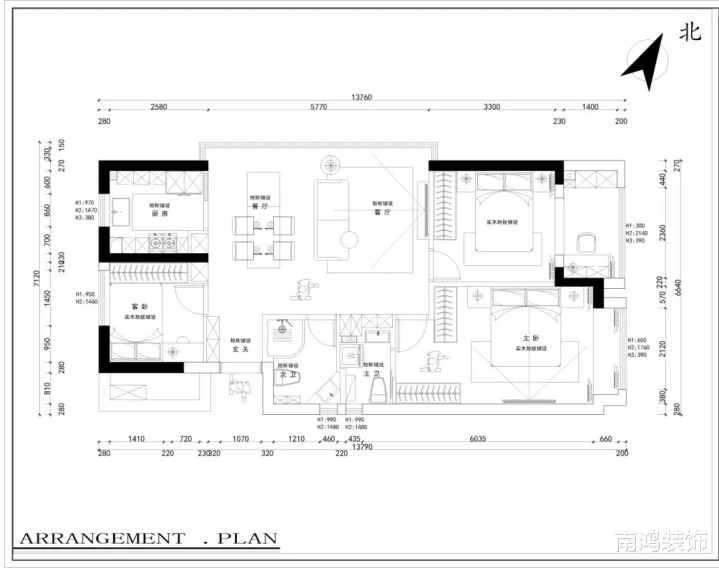 公区域是一体化的横厅样式,豁达的视线与充沛的当然光和会,将家庭所有生涯场景完整收留。