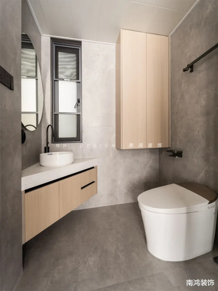 针对卫浴间的墙面结构,筹谋师定制了三角斜切台盆柜,贴合空间走向,有用擢升转角哄骗率。同期增添吊柜,拓展储物功能,底面的悬空留出更多视觉空间,也便于宽广的清洁收拾。